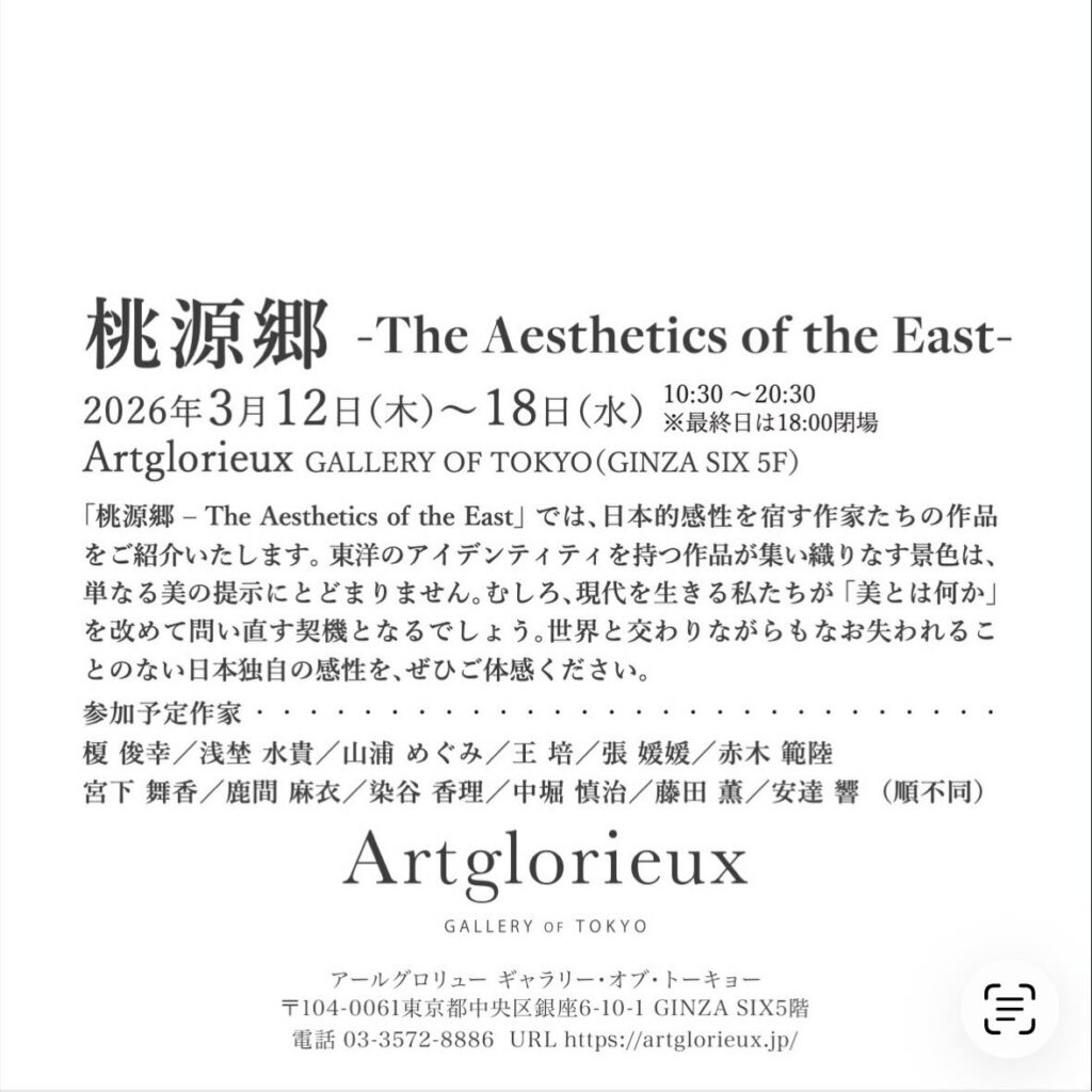 「桃源郷 – The Aesthetics of the East」では、日本的感性を宿す作家たちの作品をご紹介いたします。東洋のアイデンティティを持つ作品が集い織りなす景色は、単なる美の提示にとどまりません。むしろ、現代を生きる私たちが「美とは何か」を改めて問い直す契機となるでしょう。世界と交わりながらもなお失われることのない日本独自の感性を、ぜひご体感ください。